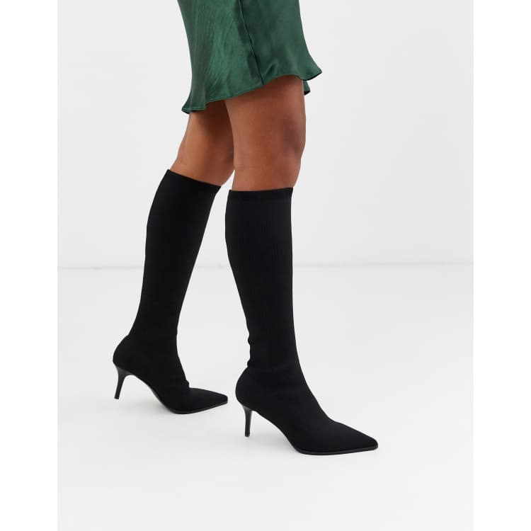 Product Name: Black leather knee high boots kitten heel 2025